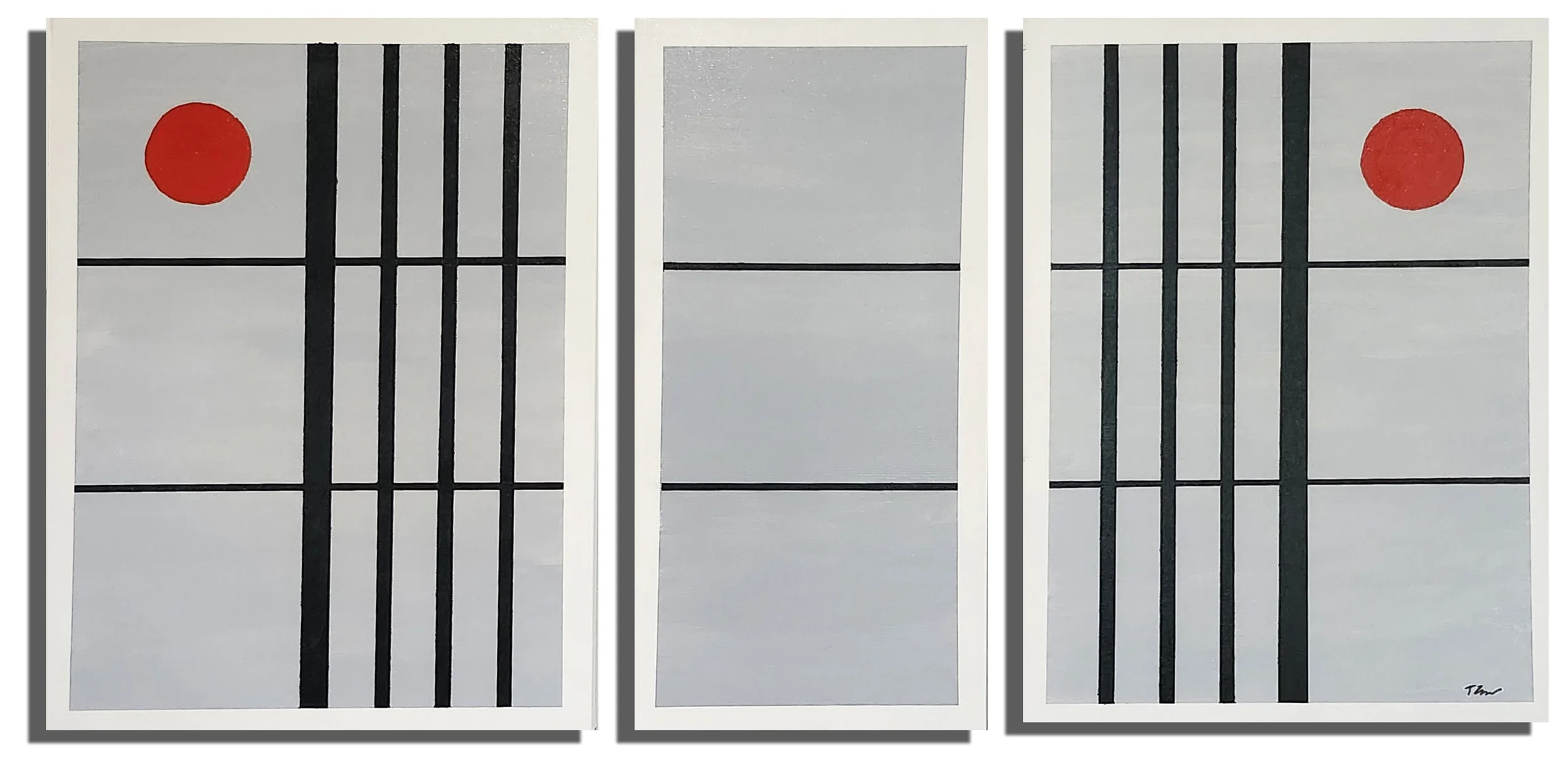 Abstract Geometric Abstract #101 - 24"H x 54"W x 1.5"D - Acrylic on Canvas Yeng Yang Curve - 40"H x 30"W - Acrylic on Canvas